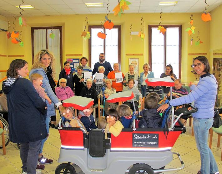 Ospiti dai capelli d'argento che, grazie agli operatori della Cooperativa Società Dolce, trascorrono insieme diverse ore della giornata con attività e laboratori di stimolazione cognitiva per il mantenimento delle capacità residue. Un merenda insieme, piccoli e grandissimi, ha suggellato la complicità che si è creata tra le generazioni presenti nel salone delle feste.