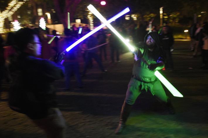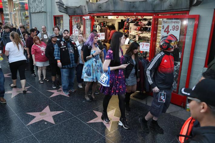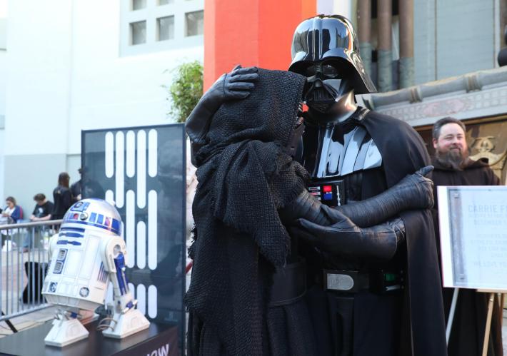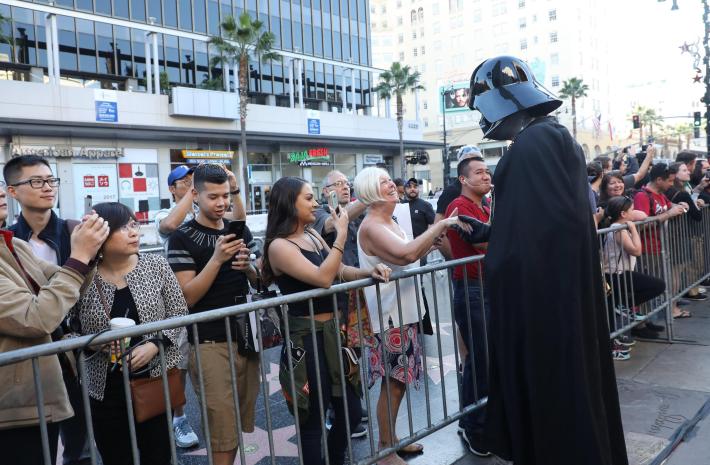Nella fotogallery, folla in delirio per la prima serata al Chinese Theatre di Hollywood per il film Star Wars: L'ultimo Jedi. Davanti al cinema anche alcuni fan travestiti dai personaggi della saga.