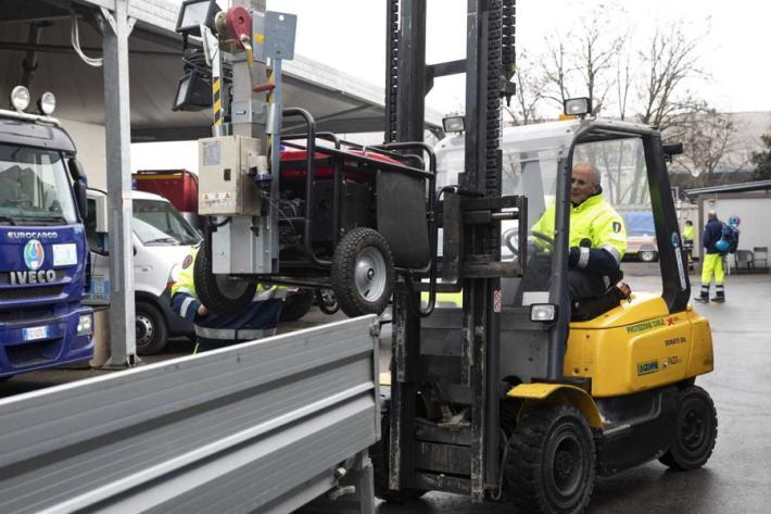 Alluvione del Reno, pronti a partire 50 volontari parmigiani. Hanno preparato i mezzi e i materiali nella sede di via del Taglio. Guarda le foto dei preparativi.