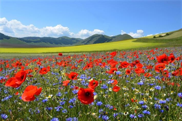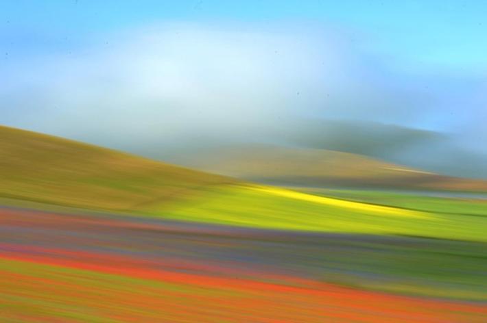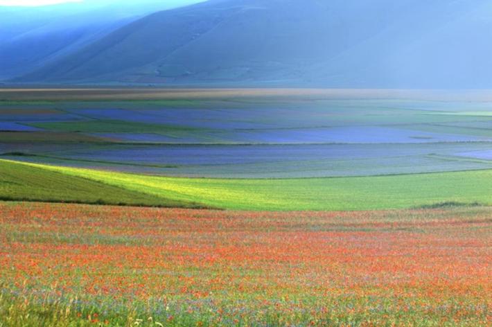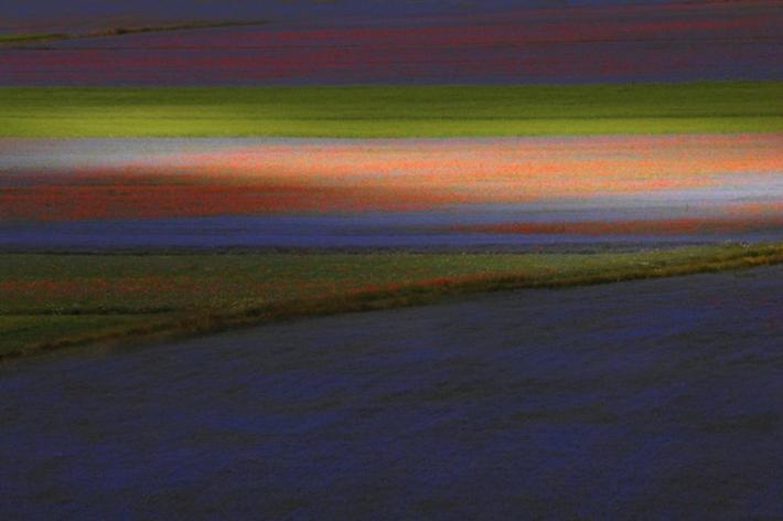 Si intitola 'Frammenti di bellezza: Castelluccio nel cuorè, la mostra allestita a Bologna in occasione del G7 Ambiente. Le immagini, che resteranno in esposizione dal 5 giugno fino al 5 luglio al Grand Hotel Majestic di Bologna, sono opera del fotografo Pierluigi Orler, che ha saputo catturare la magia di uno scenario che fonde l'opera dell’uomo e della natura. Scatti d’orgoglio, che restituiscono bellezza a una terra duramente provata dal sisma del 2016, ma dalla grande capacità di rigenerazione. Come la natura stessa, che copre con un manto scintillante di colori i campi coltivati.