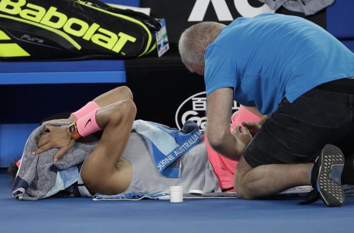 Stop a sorpresa per Rafael Nadal agli Open d’Australia. Si ferma nei quarti di finale la corsa dello spagnolo numero 1 del mondo è stato costretto al ritiro, per un problema alla gamba destra, all’inizio del quinto set del match che lo vedeva opposto a Marin Cilic, n.6 del seeding. Al momento dell’interruzione il punteggio era di 3-6 6-3 6-7 5-2 2-0 in favore del croato che ora in semifinale incontrerà il britannico Kyle Edmund, autore dell’eliminazione del bulgaro Grigor Dimitrov.