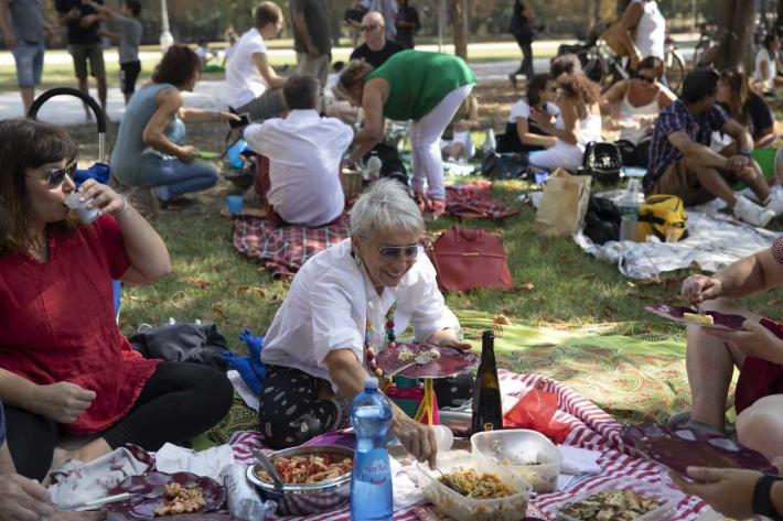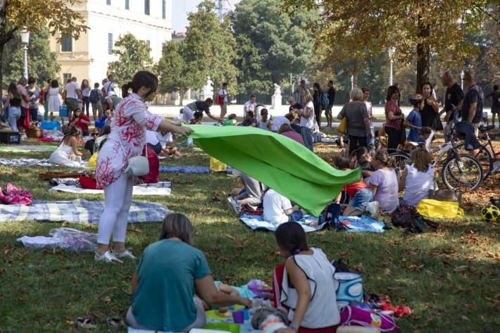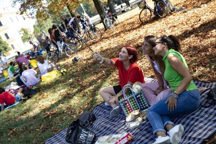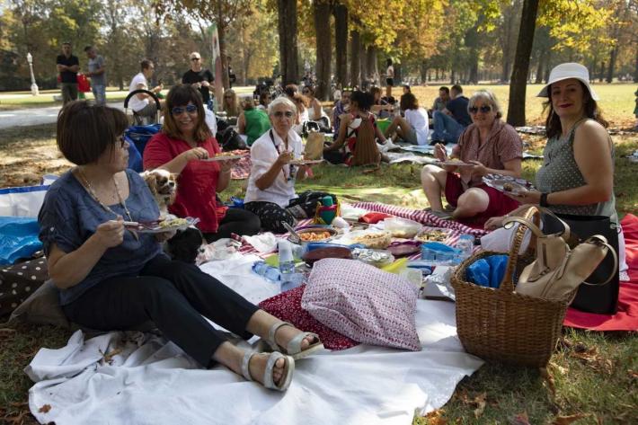 L'abbigliamento richiesto? Tricolore. Verdi, bianchi e rossi i pic-nic che all'ora di pranzo sono diventati padroni del parco Ducale. All'interno delle manifestazioni di Verdi Off, un pic-nic sull’erba a tema verdiano davanti al Palazzo Ducale e durante il quale si sono susseguite esibizioni musicali e artistiche dedicate al Maestro Giuseppe Verdi. Dagli allievi del Conservatorio Arrigo Boito Parma al tenore Alessandro Vannucci al soprano Alessia Panza accompagnati dal pianoforte.