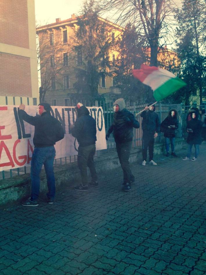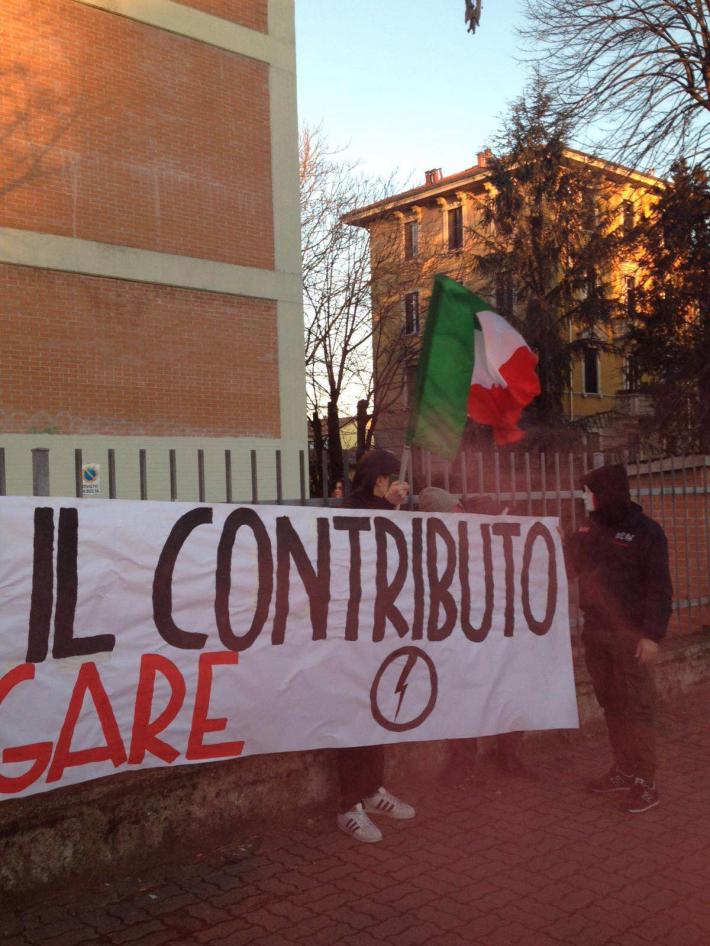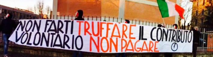 Protesta del Blocco Studentesco contro il "contributo volontario". Al Melloni il Blocco Studentesco ha esposto uno striscione recante la scritta: "Non farti truffare, il contributo non pagare!" con fumogeni e bandiere a fare da cornice.