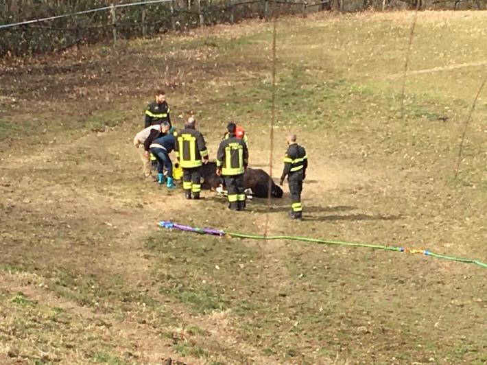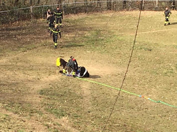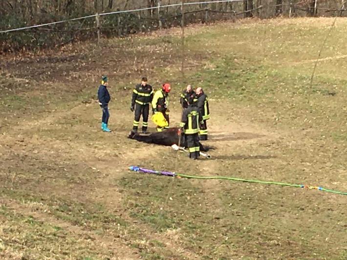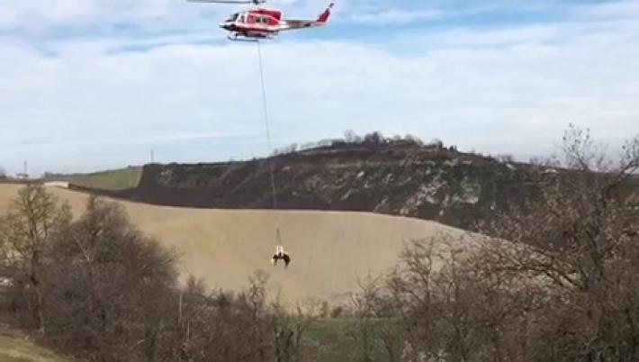Cavalla in un dirupo a Miano: sedata, imbragata e salvata in volo dai vigili del fuoco. Guarda le foto del recupero.