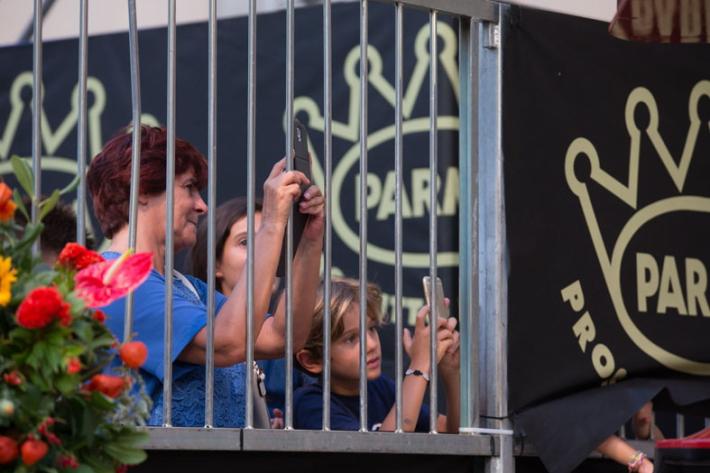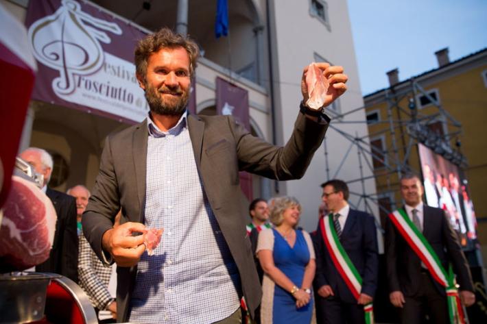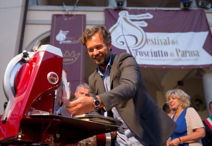 Chef Cracco taglia la prima fetta: folla di fans al Festival del Prosciutto. Guarda tutte le foto della prima serata del Festival al Langhirano.
