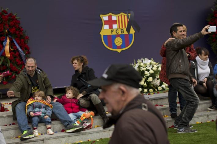 Un omaggio trasversale, senza barriere e tifo di parte, unito sotto un’unica bandiera: quella del calcio. Così il Camp Nou ha omaggiato il fuoriclasse olandese scomparso giovedì a 68 anni, stroncato da un tumore. Soltanto nelle prime tre ore di apertura del Memoriale sono sfilate più di 5mila persone: una marea di gente comune, per un giorno semplici tifosi di calcio, che si è confusa con tante personalità del mondo del pallone e della politica locale. Chi ha portato fiori, chi sciarpe e persino lecca lecca (l'antidoto scelto da Cruijff dopo aver smesso di fumare in seguito all’intervento al cuore), chi si è raccolto in preghiera davanti alla grande immagine dell’ex fuoriclasse olandese esposta all’ingresso della tribuna principale; poi, la firma nel libro che verrà consegnato ai familiari di Cruijff affinché, per dirla con il presidente del Barcellona Josep Maria Bartomeu, «possano sentire il calore della gente».