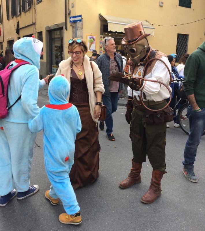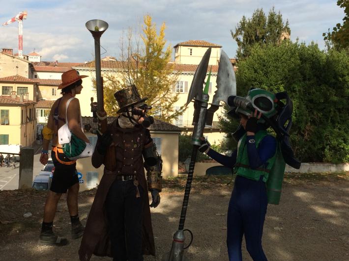 E' in corso la grande kermesse di Lucca Comics & Games: la manifestazione dedicata a fumetti e dintorni continua nella città toscana fino al 5 novembre. Nelle foto di un lettore, ecco una carrellata di costumi che si aggiravano per le strade di Lucca. Da Batman e Catwoman a HeMan, da orchi e principesse fino a un legionario romano. La sua legione? Quella di Alberto Angela (con tanto di foto sullo stendardo...).