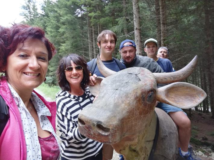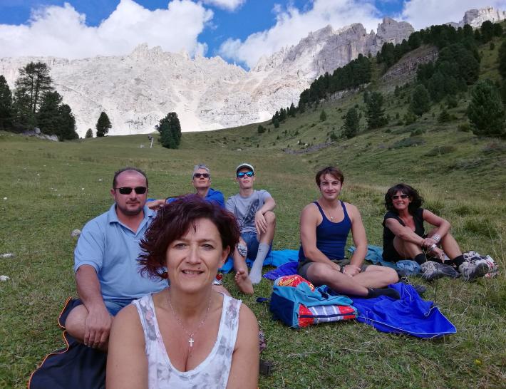 Le famiglie Montanari e Manghi mandano un saluto dal Latemar a Obereggen (Alto Adige).