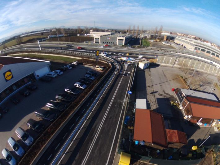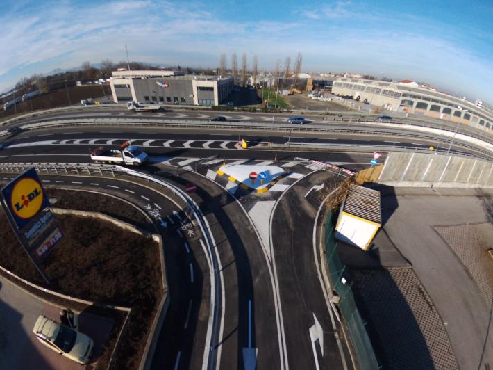 Con l’intento di offrire una miglior fruibilità alla clientela del punto di vendita Lidl e, gli evidenti interessi pubblici connessi ad ingresso diretto al parcheggio e delle sue funzioni, è stato elaborato un progetto a norma di legge per la costruzione del nuovo innesto, realizzato con risorse totalmente a carico del soggetto privato. Il nuovo innesto, inaugurato oggi, prevede anche la continuità della pista ciclabile in tangenziale fino al parcheggio scambiatore, la posa della nuova segnaletica di preavviso e la sistemazione di alcune barriere antirumore divelte in tangenziale.