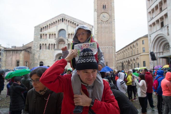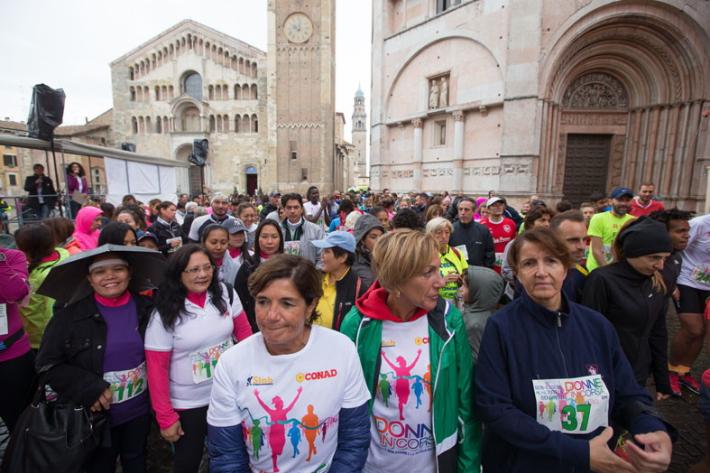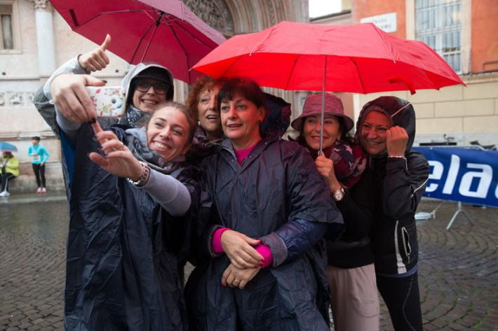 La pioggia non ha fermato "Donne in corsa". E stamattina piazza Duomo si è riempita. C'erano circa 650 persone alla camminata benefica non competitiva organizzata da Forum Solidarietà con sette associazioni dalla parte delle donne (ANDOS, Centro Antiviolenza, Centro di Aiuto alla Vita, Casa della Giovane, Futura, Pozzo di Sicar e APE insieme).
