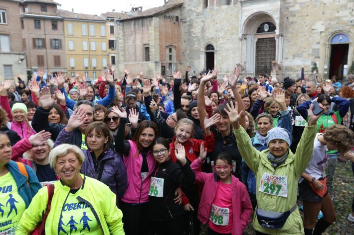 Prima di dare il via alla corsa di 5 chilometri in città, la piazza ha osservato un minuto di silenzio in ricordo di Elisa Pavarani, la 39enne uccisa in via Sidoli