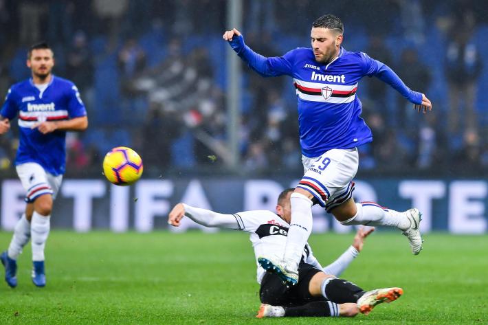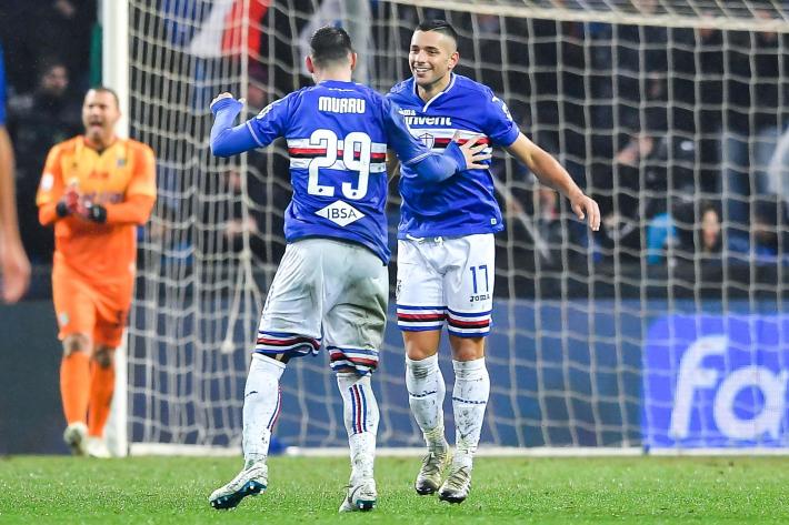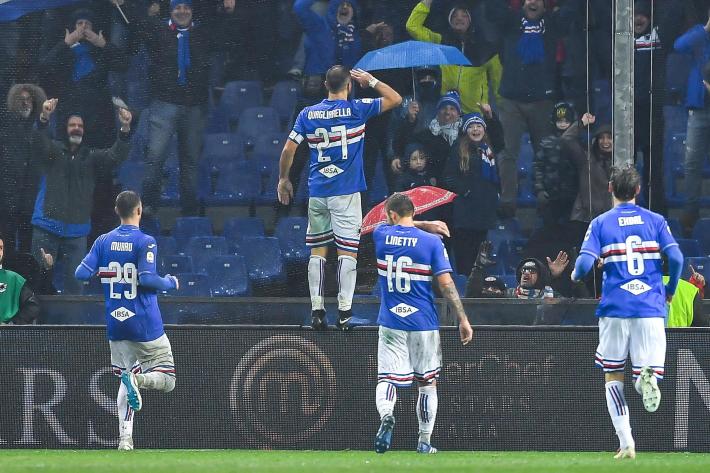 65' Sampdoria in vantaggio con Caprari (che stava per essere sostituito)
