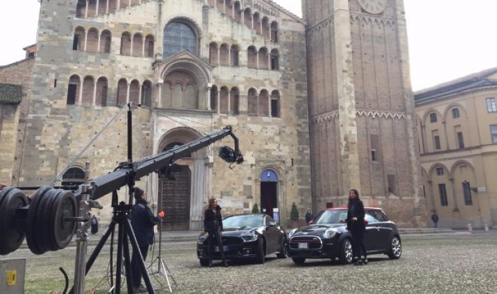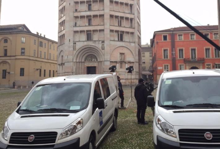 "Easy driver" è una trasmissione in onda su Rai1 la domenica mattina alle 10. La puntata che stanno girando è del 28 febbraio, inizia da piazza Duomo per poi girare in Pilotta e arrivare nella Bassa. A condurre e provare le due macchine le conduttrici Roberta Morise e Veronica Gatto.