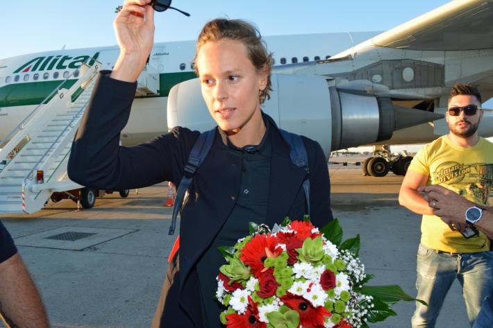 (ANSA) - «Sono contenta di tornare a casa: adesso onestamente mi sono anche "rotta" di sentire sempre la parola delusione, delusione. Certo, c'è un po' di rabbia per quei 20 centesimi, ma la delusione è un’altra cosa. Cosa si prospetta ora? Sono contenta di andare in vacanza». Sono le uniche parole di Federica Pellegrini, volto stanco, poca voglia di sorridere, appena scesa dall’aereo di Alitalia proveniente da Rio de Janeiro, atterrato poco prima delle 7. Insieme a lei, oltre a Filippo Magnini, c'erano anche altri atleti, tra cui le due campionesse olimpiche, Diana Bacosi e Chiara Cainero, rispettivamente oro e argento nello Skeet donne, il 21enne Gabriele Rossetti, oro nello Skeet e Gabriele Detti, medaglia di bronzo nei 1.500 stile libero.