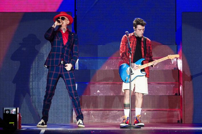 «E' uno show che mi piace perchè è tutto un crescendo - ha detto Fedez prima del concerto - e se spesso ho dovuto mettere nei miei live anche brani che non mi piacevano suonati dal vivo, questa volta tutta la scaletta è bella da fare sul palco». Una scaletta, quella del concerto, pensata per due ore e mezza di show e che parte da 'Musica del cazzò, dopo l’ingresso della band a ritmo di marcia, per chiudere su 'Vorrei ma non postò, attraverso 'Piccole cosè, 'Amore eternit', 'Domani smettò e gran parte degli altri titoli più conosciuti dei due, compreso un medley al sapore di Green Day e Blink 182, tra 'Olivia Oil' e 'When I Come Around’, 'American Idiot' e 'Fabrizio Fa Bruttò, oltre a 'All The Small Things' assieme a 'Non c'è Due Senza Trash'.