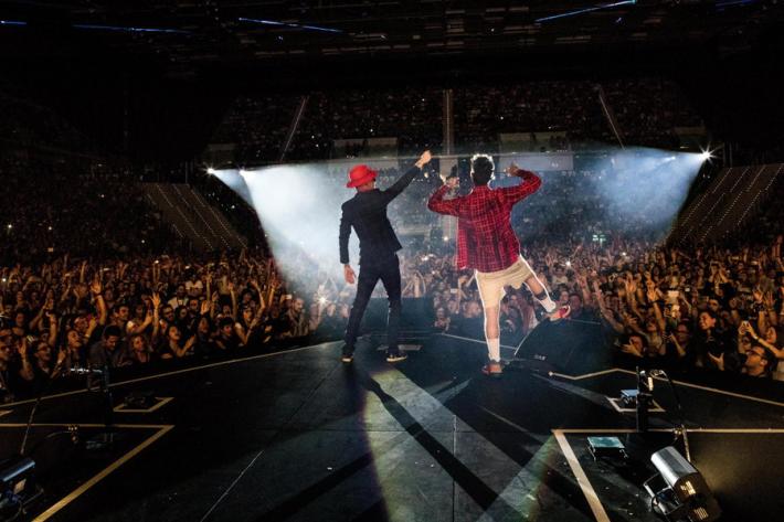 Comincia sulle note di 'Bella ciaò suonata al pianoforte da Paolo Jannacci, il tour a due piazze di Fedez e J-Ax, che ha preso il via questa ieri dal PalaAlpitour di Torino. I due 'Comunisti col Rolex', dal titolo dell’album firmato a quattro mani e pubblicato ad inizio anno, saranno protagonisti di diciannove date live organizzate nei palasport d’Italia, con due appuntamenti a Roma (uno esaurito) e quattro a Milano (tre esauriti), accompagnati da una scaletta di una trentina di brani scelti tra quelli firmati insieme per l’album condiviso, ma anche dai due repertori personali (Articolo 31 compresi).