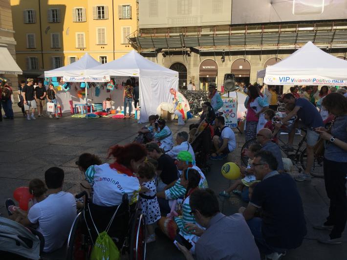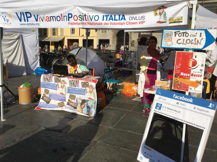 Ecco alcune foto delle iniziative di Vip Parma in piazza Garibaldi per la GNR (Giornata del Naso Rosso).