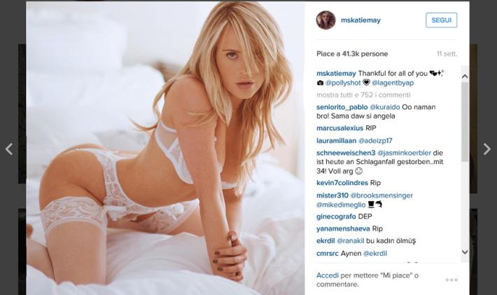 La notizia è dei giorni scorsi, ma il tam tam continua soprattutto nel mondo dei social: Katie, infatti, oltre che una modella di Playboy era una protagonista soprattutto su Instagram e Snapchat. E la sua morte improvvisa ha provocato profonda impressione.