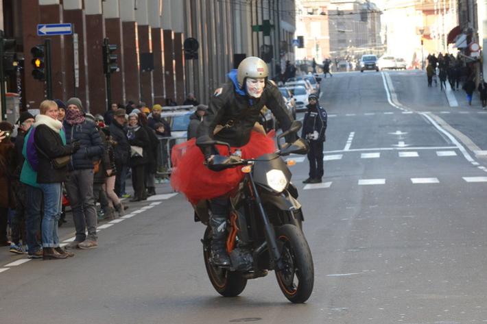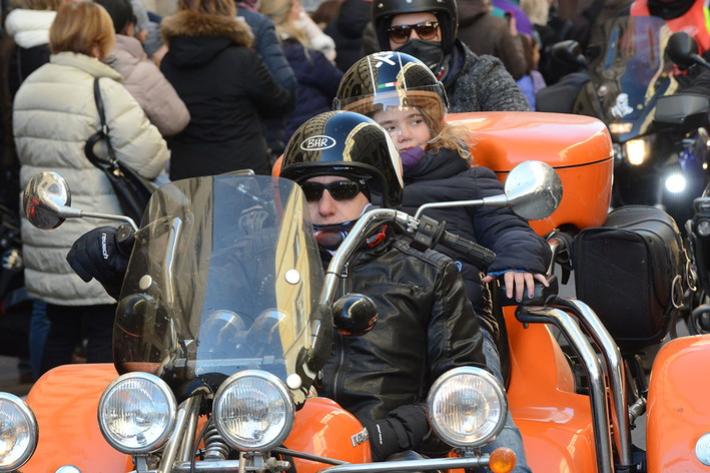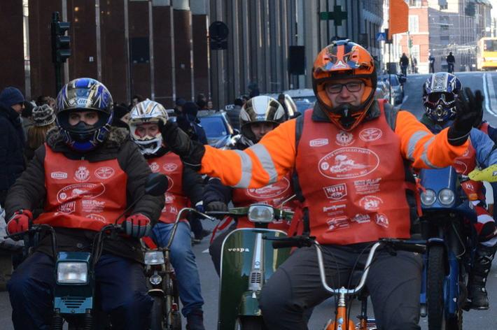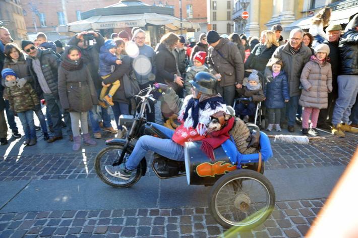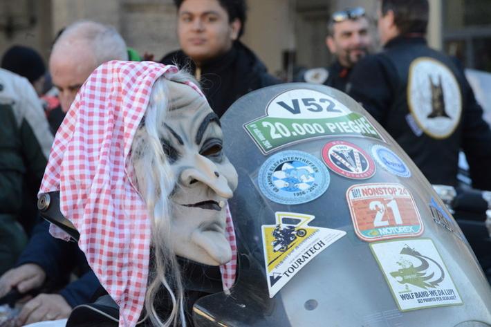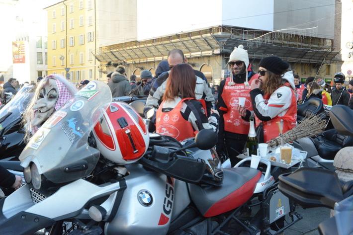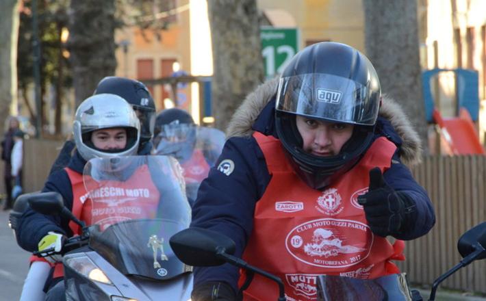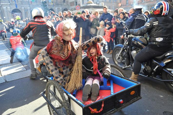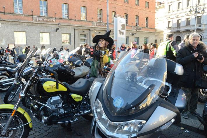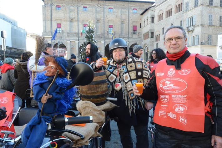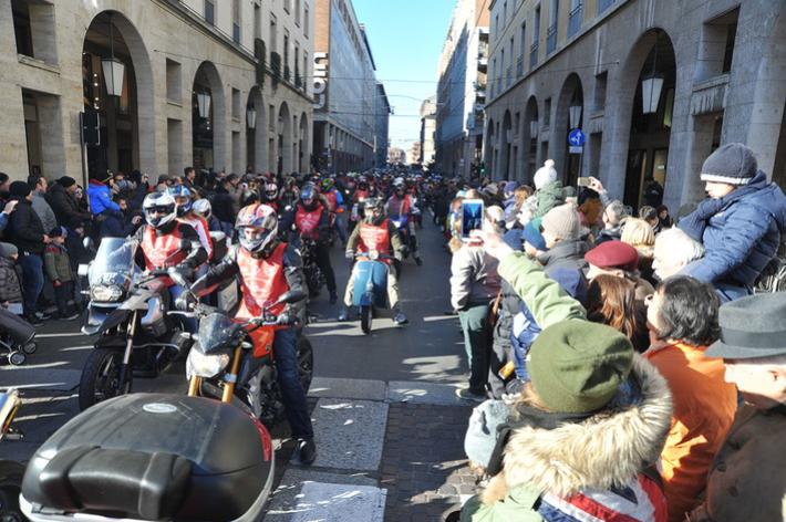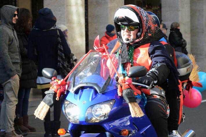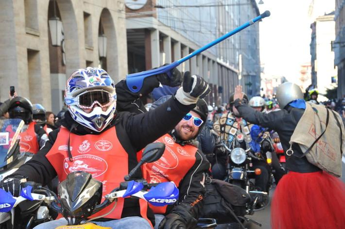 Via Abbeveratoia l'hanno occupata praticamente tutta: una sfilata di scope della Befana motorizzata e in missione generosità. Si ripete anche quest'anno - il diciannovesimo - l'appuntamento promosso a scopo benefico dal club Moto Guzzi dì Parma e aperto a tutti i motociclisti.