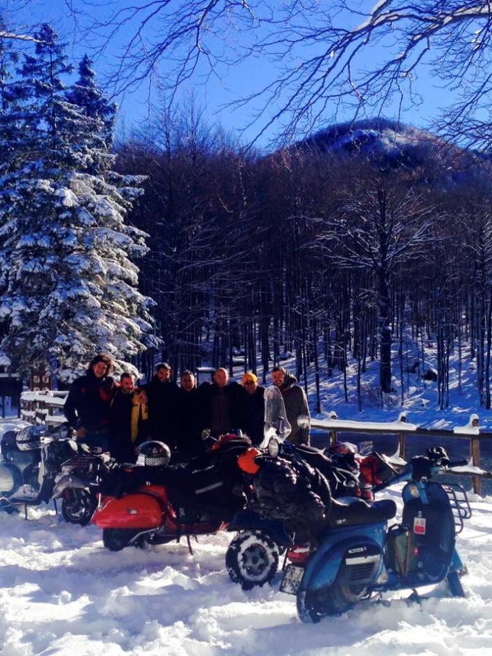 Le spettacolari foto scattate dai gestori del Rifugio Lagoni. Dove allo spettacolo del bianco attorno ai laghi - sono caduti 20 centimetri di neve - si aggiunge la curiosità di chi è arrivato fin lassù in...Vespa. Guarda tutte le foto