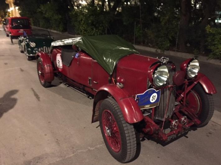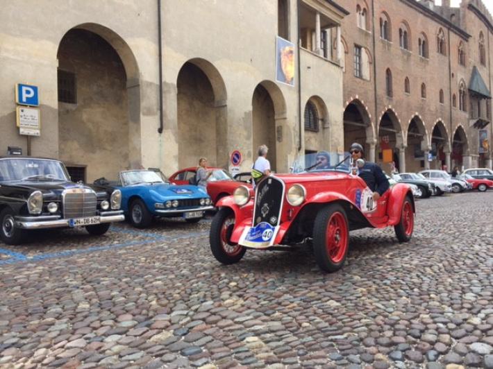 - Prima tappa da Mantova, attraverso la Pianura Padana e gli Appennini, fino alla Riviera Adriatica. Alle ore 11:00, da Piazza Sordello al circuito Nuvolari di Mantova per disputare le prove cittadine, poi tappa all’Autodromo di Modena prima di proseguire il viaggio per i colli emiliani fino a Faenza dove la corsa, per la prima volta in assoluto, farà una sosta alla Scuderia Toro Rosso per i controlli orari. La prima tappa si concluderà con la cena al Grand Hotel da Vinci di Cesenatico.