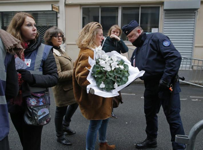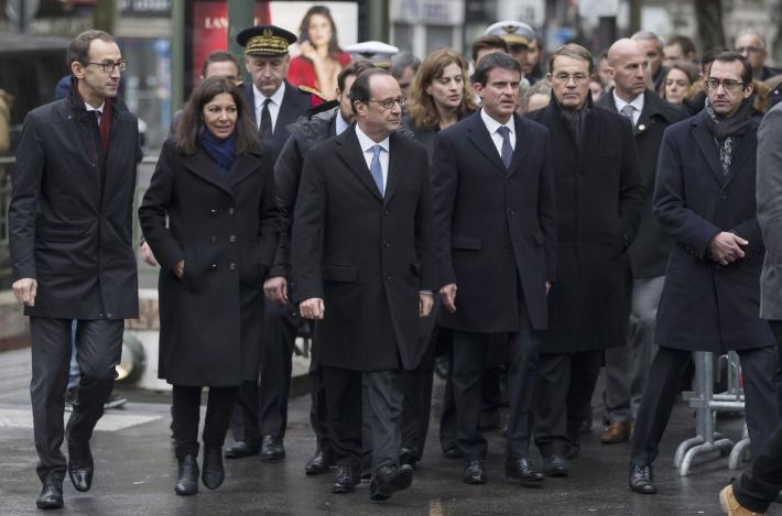 Prima davanti alla Bonne Biere, uno dei bistrot colpiti, poi nella zona del Petit Cambodge, Hollande la Hidalgo hanno sostato durante la lettura dei nomi delle vittime. Poi, un minuto di silenzio, osservato da tutti, con il traffico bloccato nella mattinata grigia e piovosa di Parigi.