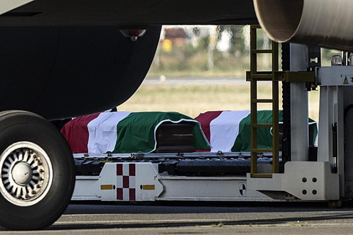 I corpi di Adele Puglisi, Marco Tondat, Claudia Maria D’Antona, Nadia Benedetti, Vincenzo D’Allestro, Maria Rivoli, Rossi, Claudio Cappelli e Simona Monti sono partiti in mattinata dal Bangladesh a bordo del Boeing 767 del XIV Stormo, mentre Mattarella era in volo verso Roma, dopo aver interrotto la sua visita in Messico. Arrivato a Ciampino, il presidente ha incontrato i familiari in forma privata, si è intrattenuto con loro, in una saletta riservata del 31/mo Stormo, nella zona militare dell’aeroporto di Ciampino. Poi l’arrivo delle salme, con le bare avvolte nel tricolore, che subito dopo sono state trasportate al Gemelli, dove, dopo il riconoscimento da parte dei familiari, inizieranno gli esami di rito: la tac e poi domani l’autopsia.