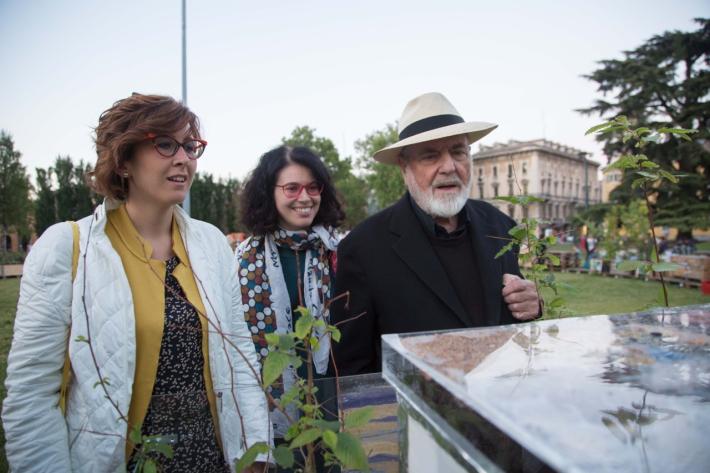 Pilastro creativo dell’iniziativa, Michelangelo Pistoletto, uno dei maggiori artisti contemporanei, e la sua convinzione che l’arte crea in modo responsabile le comunità autentiche.