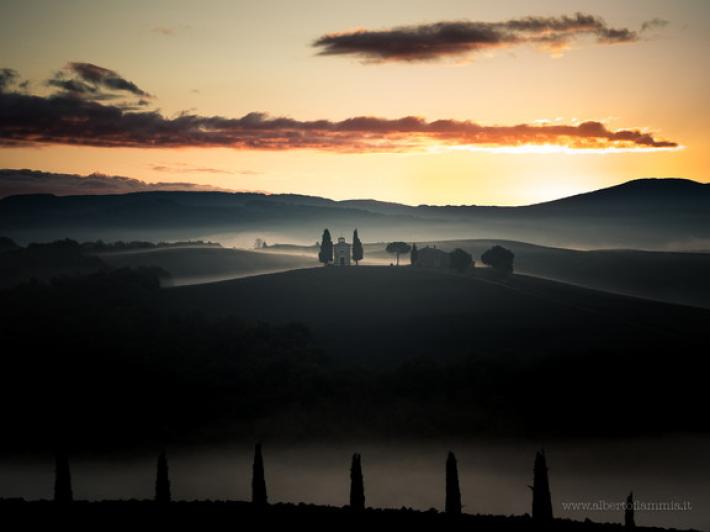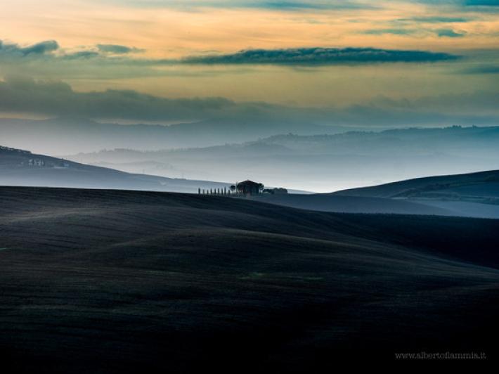 Parma - Val d'Orcia andata... e ritorno. Un ritorno fra le colline e i paesaggi di questa zona della Toscana, intendiamoci. E' quello che fa Alberto Flammia che, innamorato della Val d'Orcia, racconta questa terra alla sua maniera: con le foto. Ed è in Val d'Orica che il fotografo parmigiano esporrà 30 scatti dal 31 marzo al 3 giugno. La mostra "Incontri di drammatica bellezza" sarà aperta a Palazzo Chigi Zondadari a San Quirico d'Orcia: 26 foto misurano 30 x 45 cm, altre quattro sono più grandi (80 x 120).