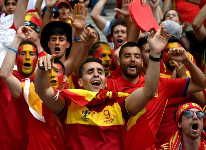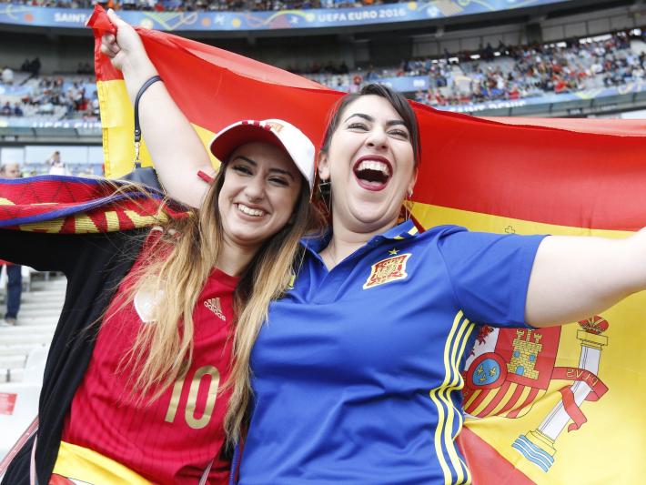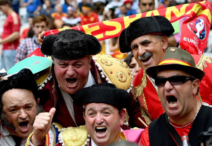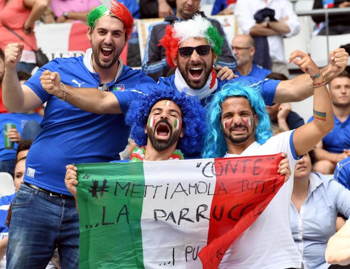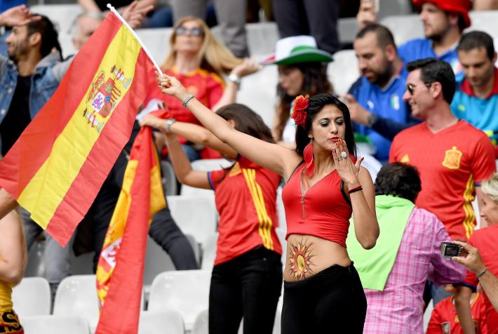 Gli italiani con il tricolore dipinto sulla faccia, le tifose spagnole in formazione sugli spalti... i belgi con elmi e bandiere e altri ancora. Ecco le foto dei tifosi e delle tifose agli Europei in Francia.