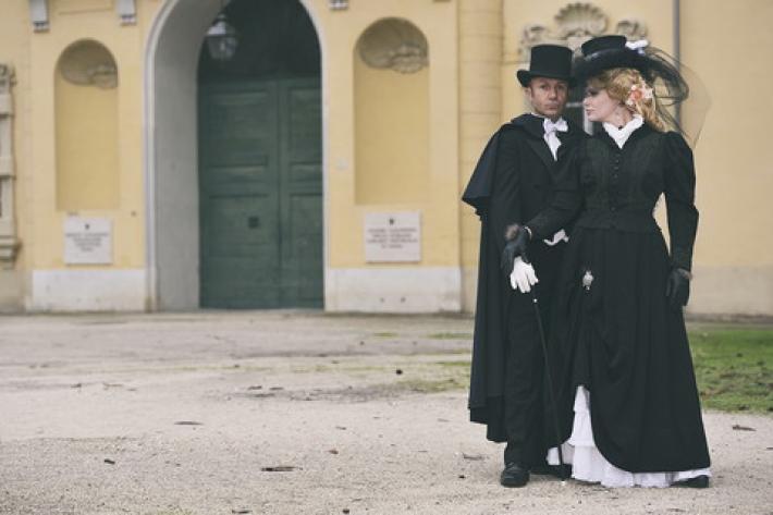 La dama che posa con un distinto signore in queste foto al Parco Ducale e in altri angoli suggestivi di Parma indossa un abito non da tutti i giorni... E' il vestito da cavallerizza dell'imperatrice austriaca Sissi. D'accordo, non è l'originale ma una riproduzione fedele in ogni particolare. Lo indossa Micaela "Michy Reine", che fa parte del gruppo salsese Noblesse Oblige.