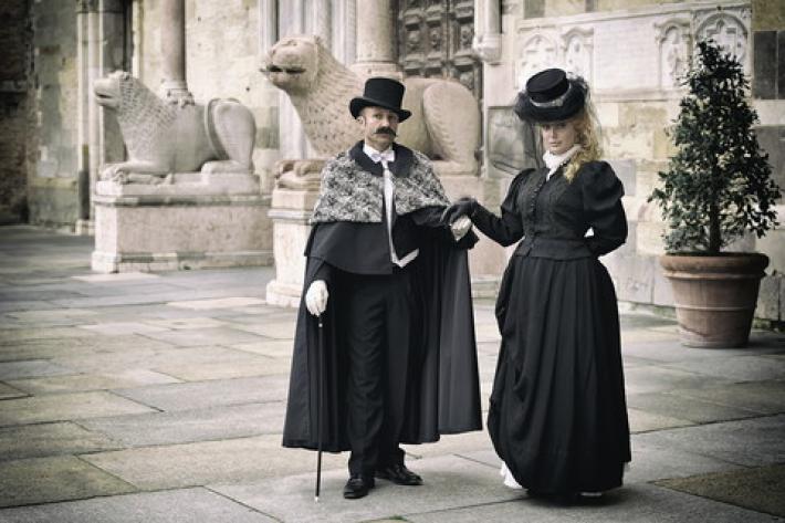 Ecco perché nelle scorse settimane Giovanni Garani ha immortalato Micaela "Michy Reine" e un altro membro dell'associazione Noblesse Oblige con un costume di epoca fine Ottocento-inizio Novecento. Una serie di scatti fra Parco Ducale, Teatro Regio, piazza Duomo e Camera di San Paolo, per un "racconto fotografico".