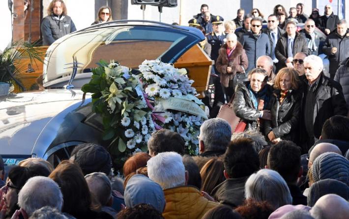 Per il funerale, in chiesa potevano entrare solo i parenti e gli amici più stretti della famiglia: la folla è stata trattenuta al di là delle transenne.