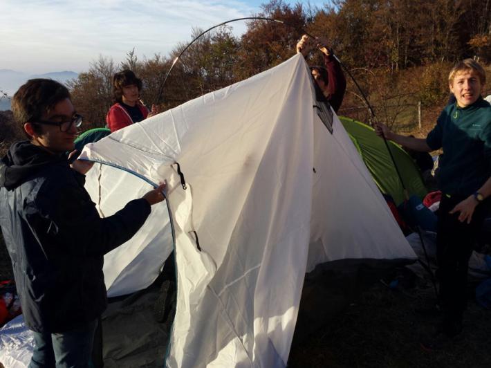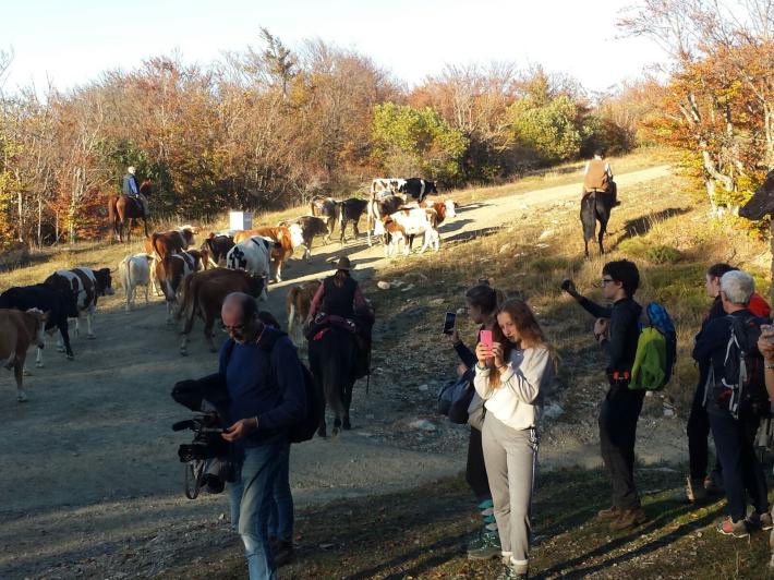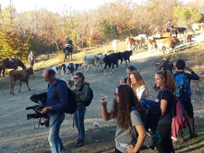 I ragazzi della 3° A del "Bocchialini" hanno accompagnato la transumanza dai pascoli del Monte Tavola a Ravarano, con tappa al monte Cervellino. Nel tardo pomeriggio hanno piantato le tende: torneranno a Parma dopo una notte in montagna.
