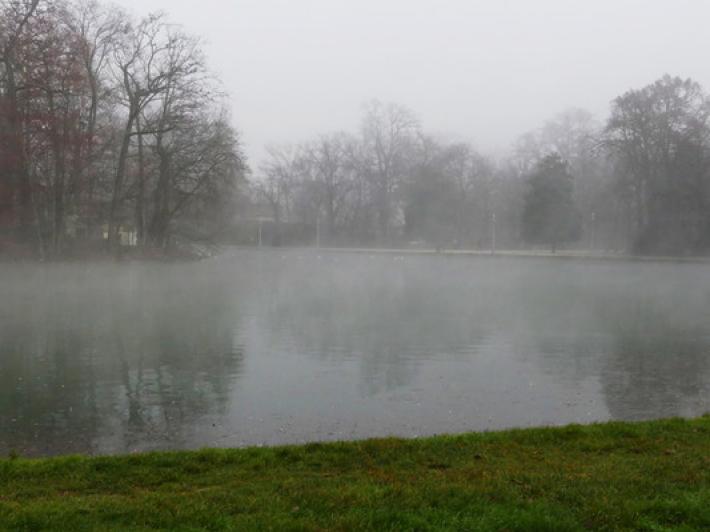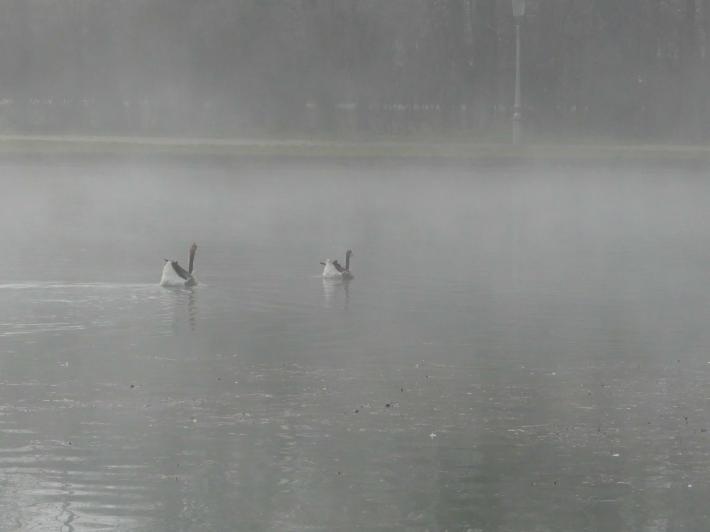Suggestioni di nebbia nel laghetto del Parco Ducale