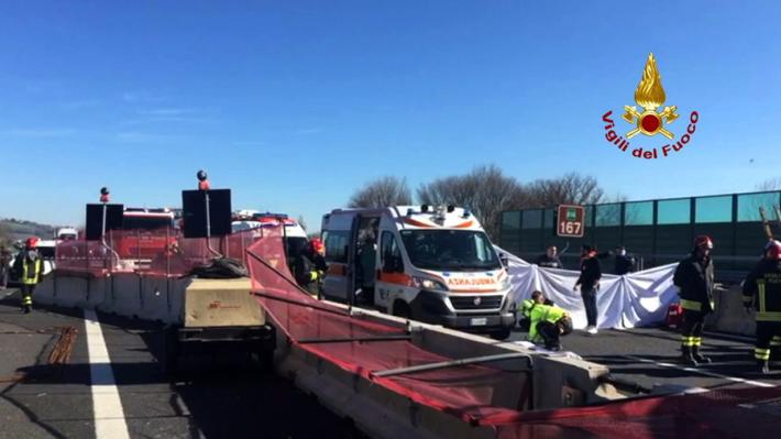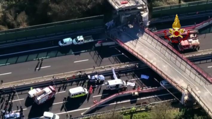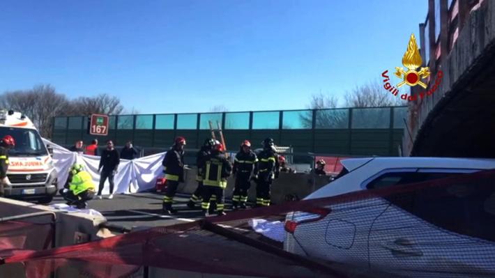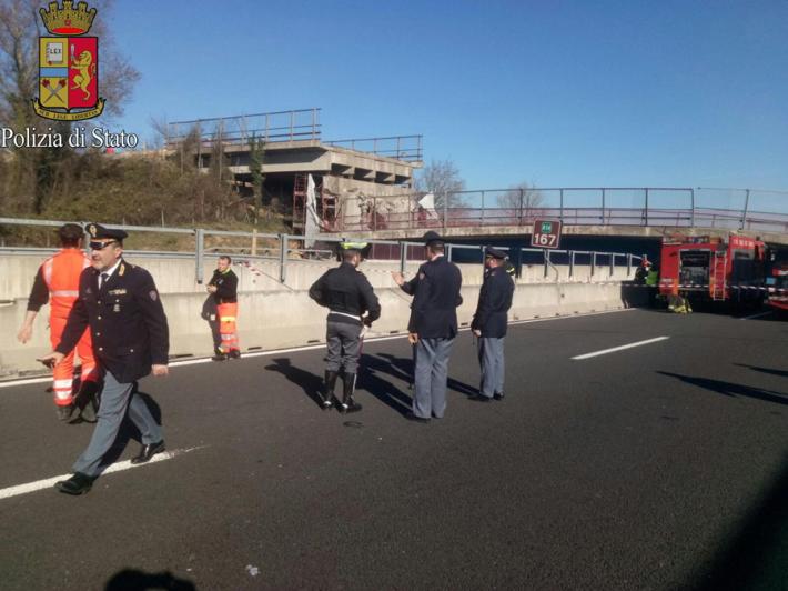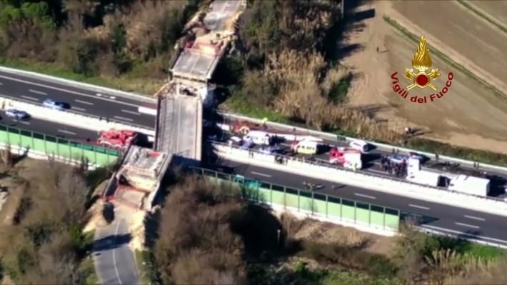 Ci sono due morti e due feriti nel crollo del ponte 167 sull'autostrada A14. Le due vittime si trovavamo a bordo di un’automobile in transito sotto il ponte. I due feriti invece potrebbero essere invece coinvolti nella caduta di alcune impalcature. Ecco le foto degli interventi dei soccorritori e del ponte crollato.