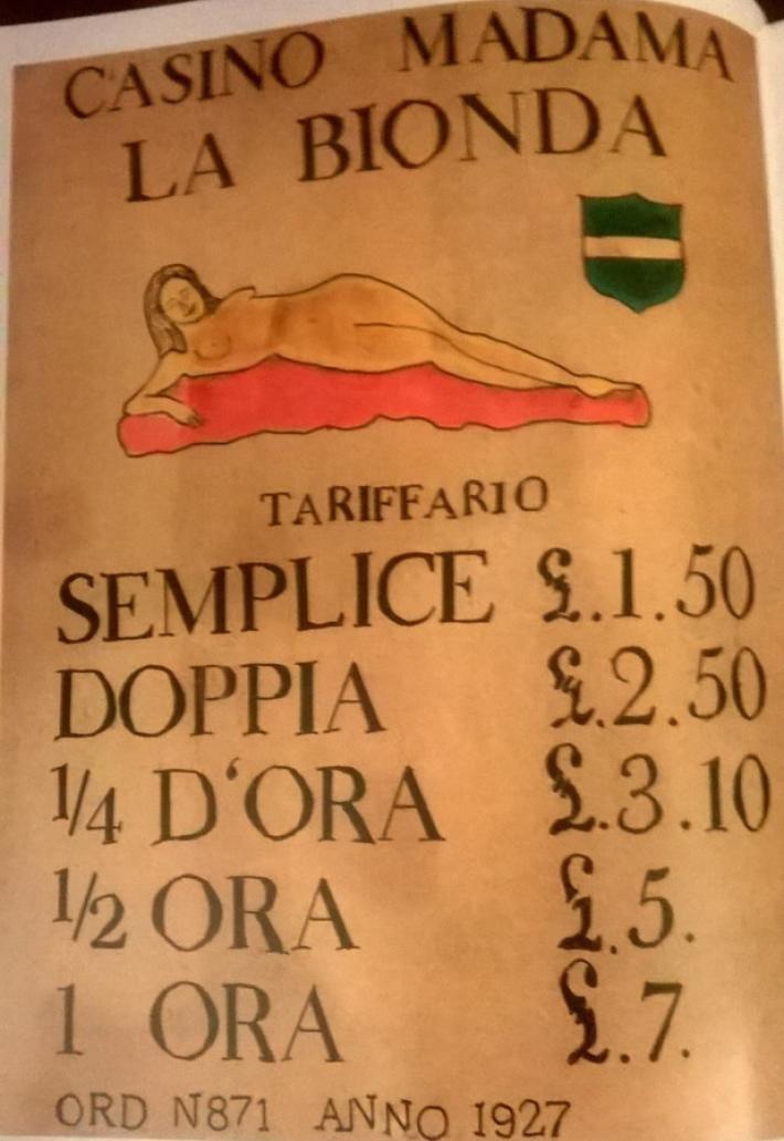 Ovviamente, come in tutti gli esercizi commerciali, ne esistevano di prima, seconda e terza qualità con tanto di cartelli esposti sulla porta (ora articoli da museo) che indicavano prezzi, durata del rapporto e alcune norme riguardanti igiene e sicurezza. I bordelli di lusso erano ovviamente frequentati da persone danarose e potenti, prevedevano salotti molto riservati dove «l’innominato» entrava (da una porta secondaria per non farsi vedere) e accedeva direttamente nell’alcova paludata di specchi, velluti, spessi tendoni alle finestre affinché non entrassero luci e sguardi indiscreti e profumata da pesanti essenze da decadentismo dannunziano.