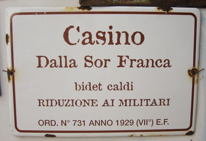 Ma esistevano bordelli di lusso come il «Paradisino», la casa di tolleranza ubicata negli anni Trenta in borgo Garimberti, dove l’elegante giardino era impreziosito da una peschiera. Mentre il più famoso era in borgo Tasso frequentato da molti studenti che, proprio a questo bordello, dedicarono un inno : «Borgo Tasso tu sei la mia patria/ sei la strada che porta in casino/ gli studenti han sempre vent’anni ecc. ecc.».
