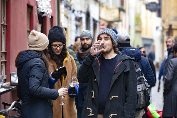 Un brindisi che è ormai tradizione, quello della Vigilia di Natale. Tra allegria e occhiali "a tema". Ecco una carrellata di foto raccolte nel cuore della città.