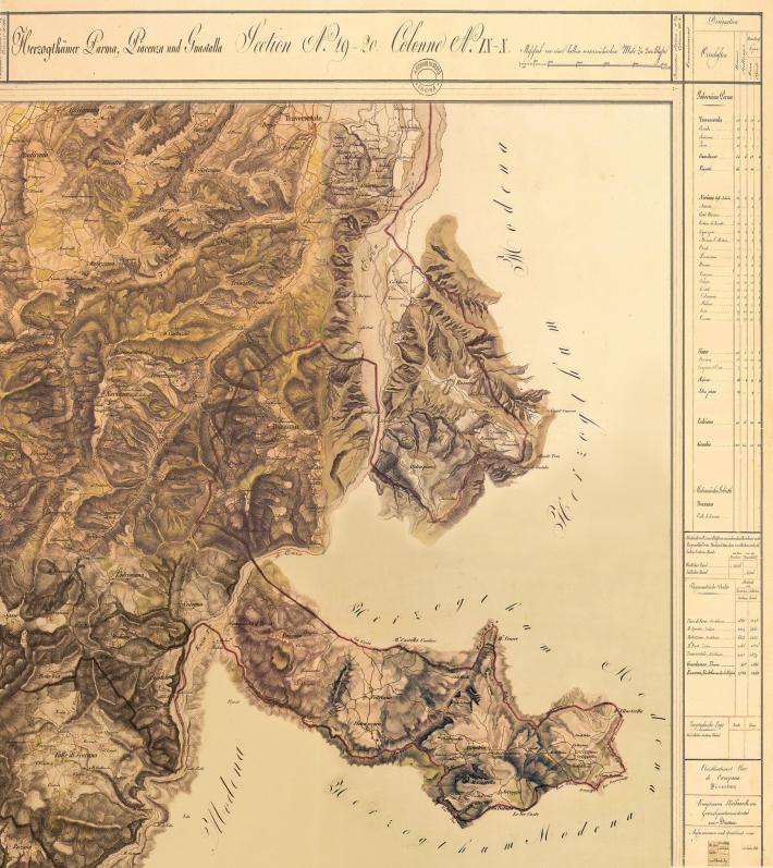 La mappa Austro-Ungarica del Ducato di Parma, Piacenza e Guastalla edita nel 1828 più la carta settecentesca dell'Oltretorrente. Inviate dal nostro lettore Paolo.