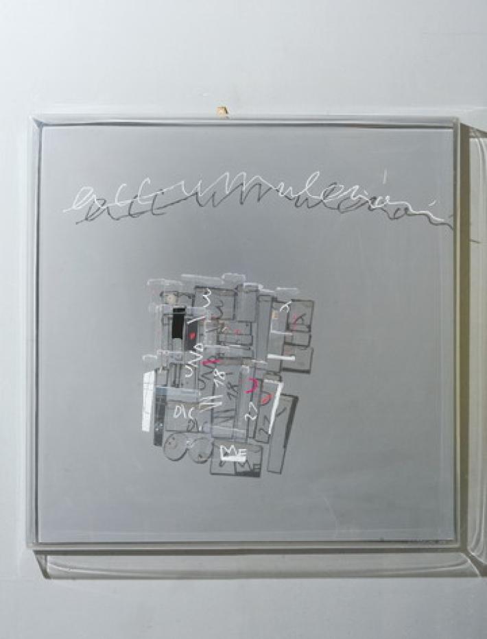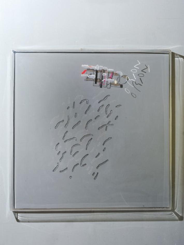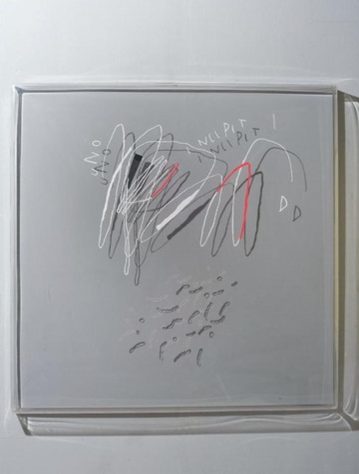 Carlo Calzolari traccia bave, fiati di segni, graffiti, grumi e grovigli, numeri e lettere dell’alfabeto, parole nelle quali si condensa il retaggio di una presenza e di un pensiero misterioso, che pare sintonizzarsi sulla meraviglia e sull’estrema sensibilità proprie dell'infanzia; tutto viene percepito da chi guarda come ombre distorte da una lastra trasparente di plexiglass, che, investita dalla luce, proietta e origina sulla tavola retrostante brividi e fluttuazioni delle forme, a conferma che la cangiante presenza della luce è fondamentale nella percezione dell’opera, continuamente generando incupimenti, chiarori, trasalimenti dei toni.