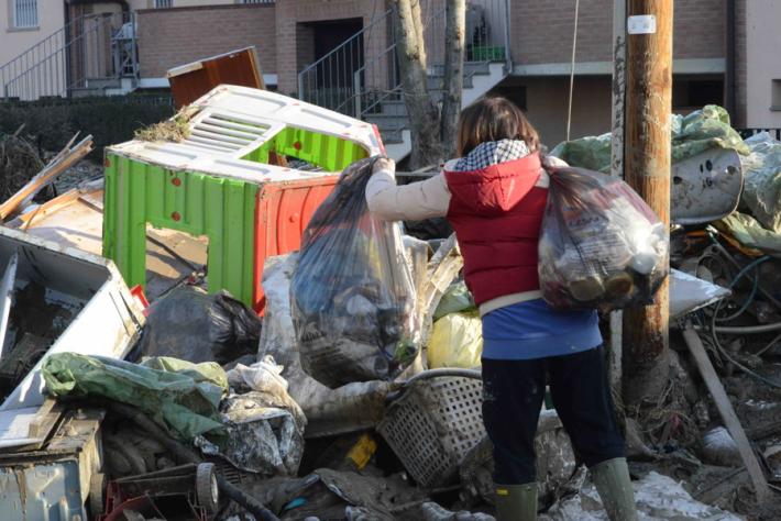 Lentigione, la prima messa dopo l'alluvione. E il lavoro nel fango Foto