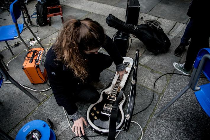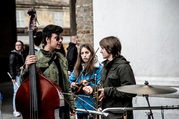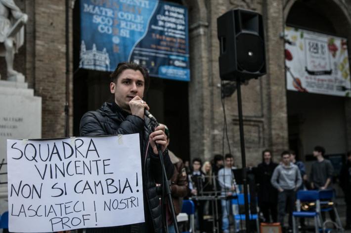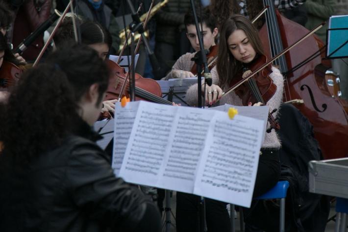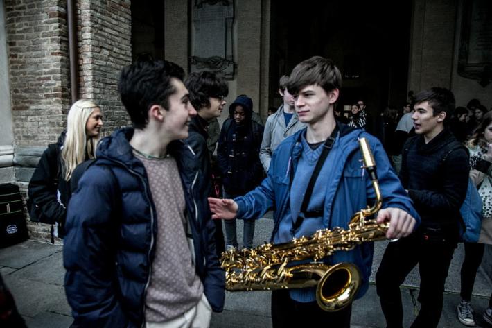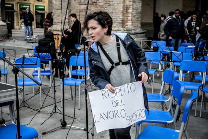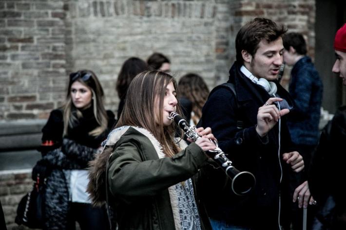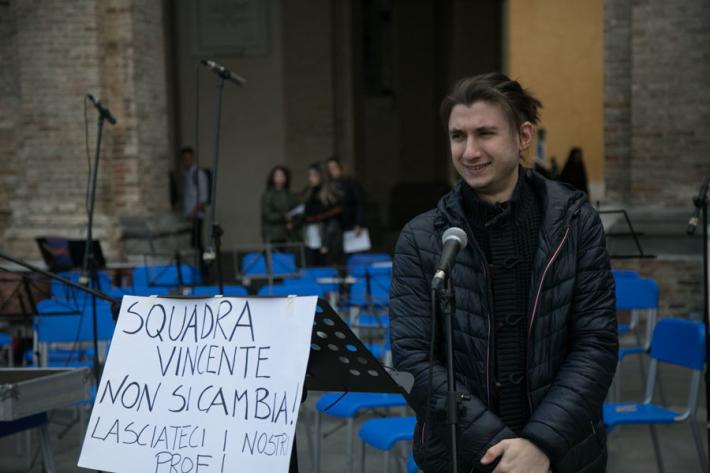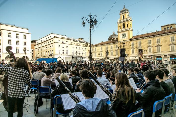 I ragazzi del liceo musicale Bertolucci in piazza con un concerto-protesta organizzato per difendere la loro scuola, con i loro strumenti. Il nuovo bando di concorso per la scuola esclude, infatti, dalla possibilità di partecipare la quasi totalità dei 27 docenti musicali che la scuola l'hanno fatta nascere e crescere, col rischio che il prossimo anno scolastico tutto cambi. E così succede in tutti i licei musicali d'Italia. Ecco tutte le foto della mattinata in piazza Garilbaldi.