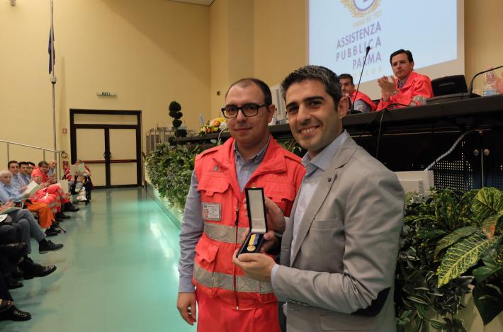 Lo dice una nota del Comune, che prosegue: Durante la cerimonia - aperta dal saluto del Prefetto Giuseppe Forlani - il sindaco Federico Pizzarotti ha ricordato il prezioso ruolo della Pubblica a Parma, ma anche la capacità dell'associazione di guardare oltre i nostri confini, come dimostra l'ambulanza inviata a Corfù durante la recente missione del primo cittadino. Pizzarotti ha quindi ricevuto dalle mani del presidente Luca Bellingeri la "Medaglia d'Oro speciale che l'Assistenza Pubblica ha voluto conferire alla città di Parma per l'affetto e l'attenzione che le ha sempre dimostrato fin dal 1902, anno della Fondazione dell'associazione. Un lunghissimo commosso applauso ha contraddistinto la consegna della Targa con Medaglia d'Oro di speciale benemerenza alla memoria di Gianpaolo Cadei, scomparso di recente, che per decenni è stato l'"anima" dell'Assistenza Pubblica di Parma. E insieme a lui sono stati ricordati i militi scomparsi in questi 4 anni. La cerimonia è poi continuata in una vera e propria festa collettiva con la consegna dei riconoscimenti ai militi che si sono particolarmente distinti fra gli 800 in servizio, e alle istituzioni che sono tate vicine alla Pubblica in questa sua preziosa attività per il bene della città.