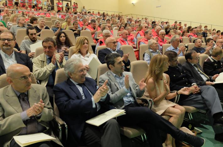La città abbraccia la Pubblica e l'Assistenza Pubblica ringrazia. Lo fa nel modo più solenne in occasione della cerimonia di premiazione per il quadriennio 2012 - 2015, all'aula magna del Campus Universitario, letteralmente stipata di divise arancioni (prime protagoniste di questa giornata), autorità e cittadini, a testimoniare l'affetto per una delle istituzioni di volontariato che più sono entrate nella mente e nel cuore dei parmigiani.