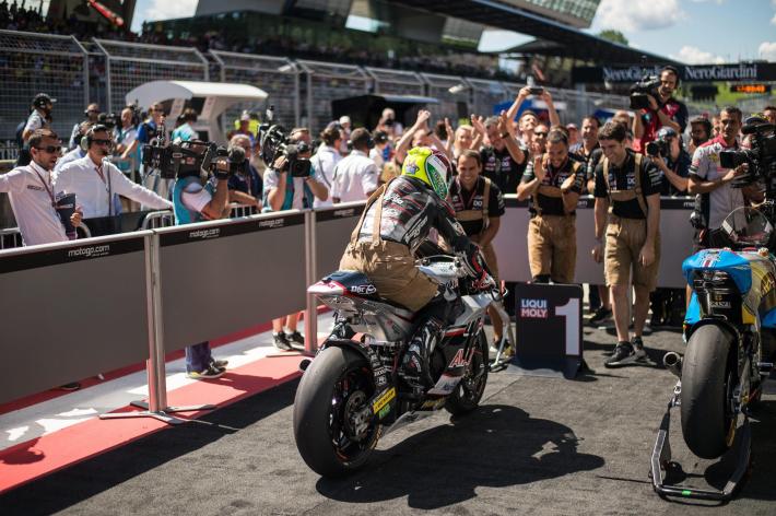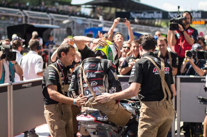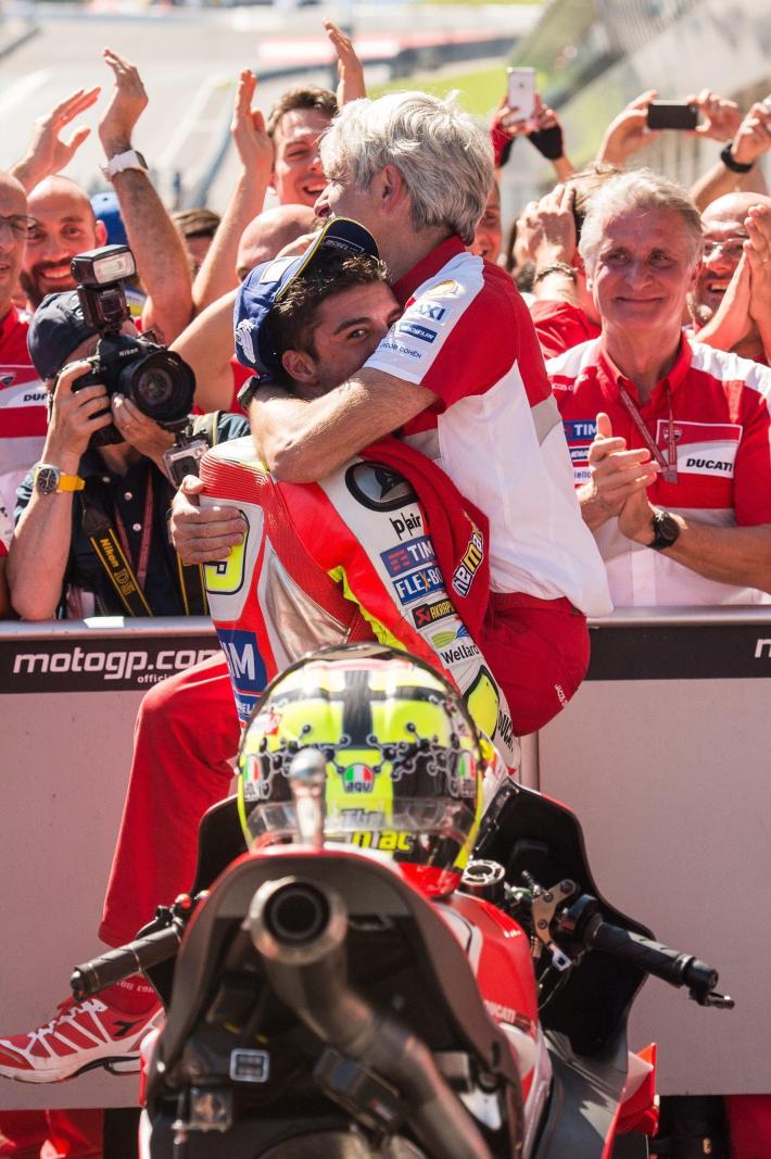 E’ stata una gara intensa, combattuta nei primi giri con l'arma delle staccate al limite e poi sul filo della velocità pura, conclusasi con il primo successo in MotoGp del pilota di Vasto che l’anno prossimo passerà alla Suzuki. E festeggiata ai box dalla «tifosa» Belen Rodriguez.