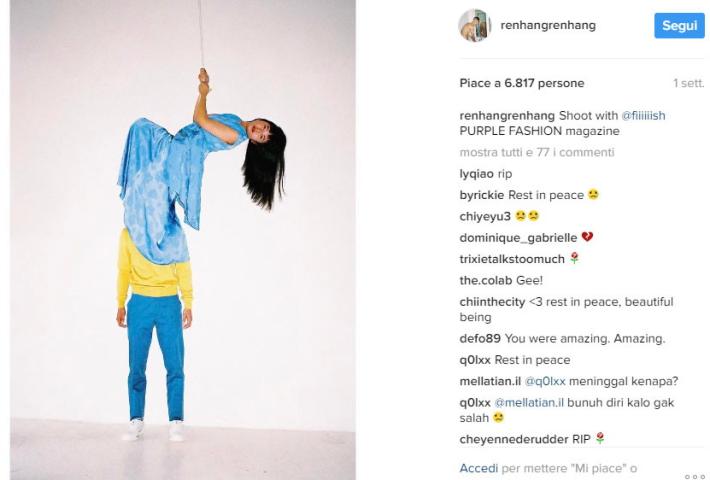 «Se la vita è un abisso senza fondo quando lo salterò la caduta senza fine sarà anche un modo di volare», depresso da anni, scriveva così sui social Ren Hang, geniale e controverso fotografo cinese, morto a soli 29 anni. La notizia è confermata sul sito dell’editore e amico Pierre Bessard, che dice di essere «disperato e sotto choc».