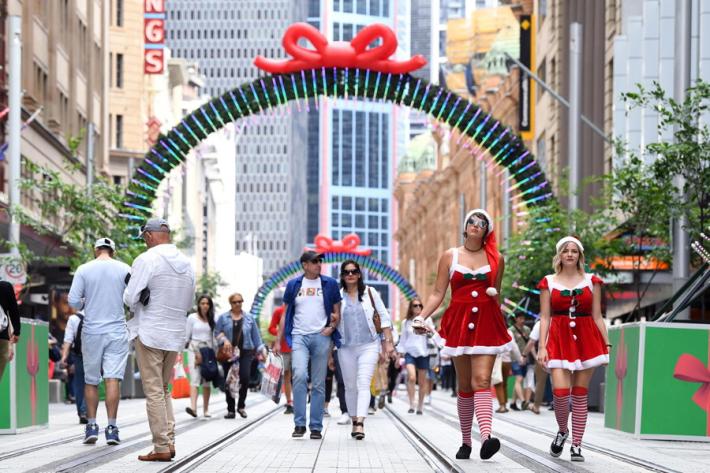 A Sydney impazza lo shopping natalizio... al caldo. D'altronde, in Australia ora è estate: per le strade si possono notare così ragazze vestite da Babbo Natale in maniche corte e persone con magliette e infradito passeggiare sotto gli alberi con le palline colorate.