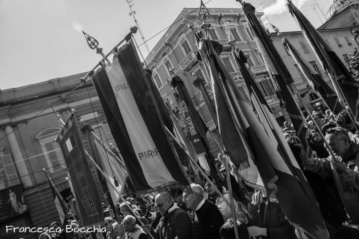Francesca Bocchia era in piazza Garibaldi questa mattina. Ha fotografato il corteo, le autorità e i tanti parmigiani che hanno celebrato la Festa della Liberazione. Ecco alcune foto di Francesca, che ha scelto il bianco e nero per "raccontare" la mattinata.