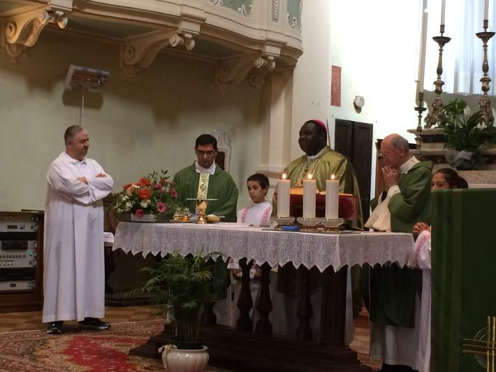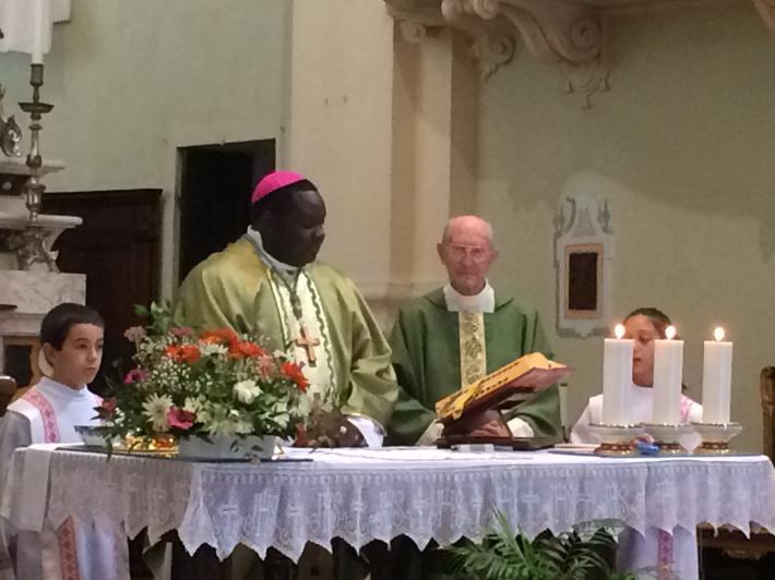Tornato in Italia dopo tre anni passati in Africa per partecipare a un'iniziativa di aggiornamento in Vaticano, il vescovo Kassala ha celebrato una messa nella chiesa di San Giacomo con il parroco Achille Melegari e don Franco Rossi, ex parroco di Cadè ora in servizio nell'unità pastorale di San Polo d'Enza e Ciano.